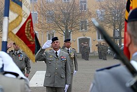 Nachdem wir gegeneinander gekämpft haben, ist unsere Beziehung heute, und dies mehr denn je, durch eine brüderliche Verbundenheit gekennzeichnet. Wir alle, Bürgerinnen und Bürger zweier demokratischer und freier Länder, haben die individuelle und kollektive Verpflichtung, uns für den Frieden einzusetzen". - General Jean-Philippe Leroux, Kommandeur der Deutsch-Französischen Brigade. An einem nebelverhangenen Nachmittag haben die Angehörigen der Deutsch-Französischen Brigade in einer feierlichen Zeremonie dem Waffenstillstandsabkommen vom 11. November 1918 gedacht, das vor 103 Jahren die blutigen Schlachten des Ersten Weltkrieges beendete. Geehrt werden an diesem besonderen Tag alle für Frankreich gefallenen Soldatinnen und Soldaten. Für die französische Armee ist dieses Datum heute ein Bindeglied zwischen Kriegen und Epochen. Gemeinsam mit ihren deutschen Kameradinnen und Kameraden gedenken die französischen Soldaten aber auch an alle Gefallenen der vergangenen Kriege und der jüngsten Einsätze. Wir sind stolz, diesen Gedenktag heute gemeinsam zu begehen.