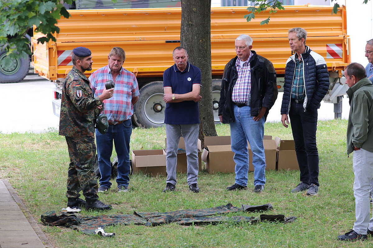 An weiteren Stationen wie der Waffenkammer, aber auch der Vorführung der Schutzausstattung zur ABC Abwehr mit Overgarment oder der mittlerweile deutlich moderneren Sanitätsaustattung wurden Neuerungen vorgestellt und Veränderungen deutlich.