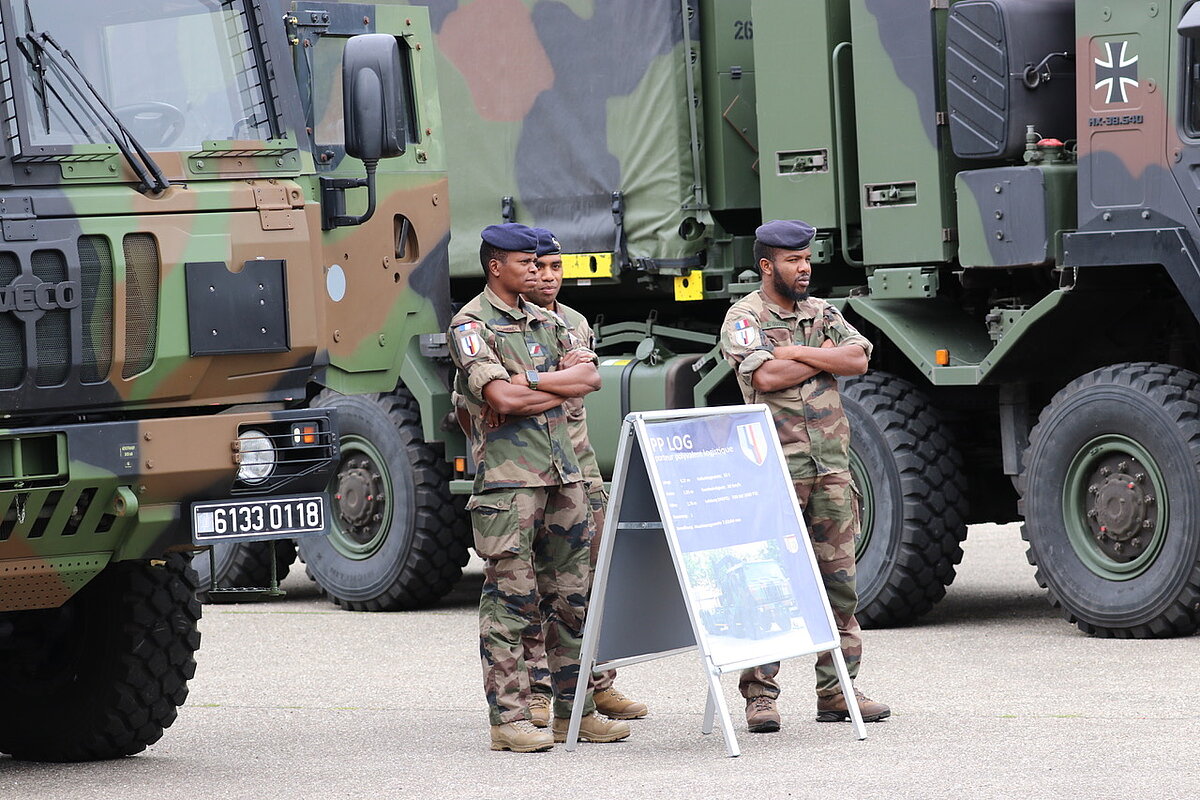 Das vorzüglich vorbereitete und trotz eines ganztägigen Stromausfalls in der Kaserne perfekt durchgeführte Programm bot gerade auch den ehemaligen Angehörigen der Brigade wertvolle Einblicke in Lage und Ausstattung der Truppe. In einem ersten, dynamischen Anteil zeigte die 1. Kompanie des BCS die Verladung eines LKW auf einen Schwerlasttransporter. Die Vorführung wurde durch eine stationäre Waffen- und Geräteschau deutscher und französischer Fahrzeuge und Ausstattung auf dem Appellplatz ergänzt.