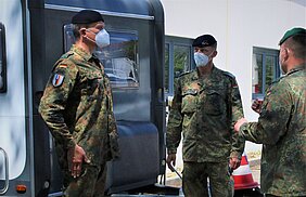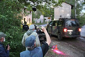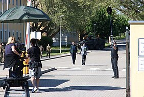 La caserne de Müllheim, mais aussi des véhicules allemands et français – allant du véhicule de transport blindé allemand GTK Boxer à des motos françaises, en passant par le véhicule de reconnaissance allemand Fennek et le véhicule blindé français PVP (Petit Véhicule Protégé) – ont constitué le décor du tournage d’un épisode de la série policière allemande bien connue du dimanche soir. Une cinquantaine de militaires allemands et français de la brigade ainsi qu’une équipe de la 10e division blindée allemande étaient impliqués en tant que figurants ou conseillers, ou pour apporter un soutien au tournage de cet épisode de « Tatort » se déroulant à Ludwigshafen, avec les actrices Ulrike Folkerts et Lisa Bitter. Tous les participants s’accordent pour dire qu’ils ont « pris beaucoup de plaisir ». Une super expérience pour les deux côtés.