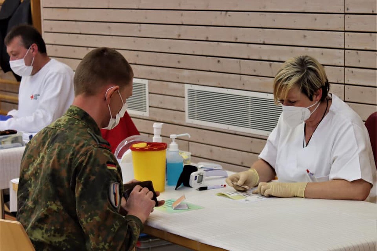 Unter Einhaltung aller Hygienebestimmungen stellte der Ortsverband des Deutschen Roten Kreuzes den reibungslosen Ablauf sicher. Nach einer Onlineanmeldung mit Terminvergabe konnten die Soldaten in der Patengemeinde Inzigkofen (Landkreis Sigmaringen) Blut spenden.