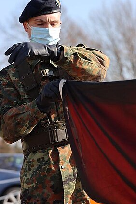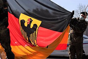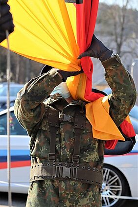 Die Flaggenparade wird täglich morgens und abends durchgeführt. Unsere Rekrutinnen und Rekruten im Artilleriebataillon 295 in Stetten a.k.M. erlernten dementsprechend in der Grundausbildung auch die Abläufe beim Hissen und Niederholen der Bundesdienstflagge. Es ist nicht so einfach, wie es aussieht.
