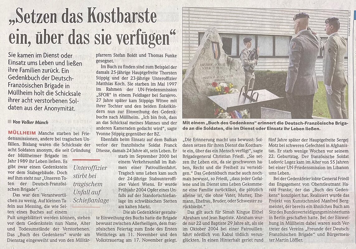 Gedenkstein und Buch der Erinnerung für unsere gefallenen Soldaten