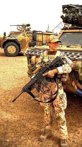 Oberstabsgefreiter Natalie Vollmer ist Systembedienerin des Spähwagens Fennek bei der 4. Kompanie im Jägerbataillon 291 in Illkirch-Graffenstaden. Die 25-jährige Soldatin ist zuständig für die Bedienung der Waffenanlage, der Funkgeräte und der Beobachtungs- und Aufklärungsausstattung. Gerade im Einsatz ist das eine verantwortungsvolle Tätigkeit, gilt es doch, gesammelte Informationen zum Schutz der Kameradinnen und Kameraden schnell und umfassend weiterzugeben. Den Fennek kennt Natalie Vollmer wie ihre eigene Westentasche, denn vor ihrer jetzigen Tätigkeit war sie bereits Kraftfahrerin des Spähwagens. Die Arbeit in der Aufklärungskompanie macht ihr Spaß. „Wir sind ein super Team“, sagt die junge Soldatin mit Stolz, „das hat der Einsatz in Mali gezeigt. Jeder konnte sich zu einhundert Prozent auf den anderen verlassen“. 2015 ist Natalie Vollmer beim Artilleriebataillon 295 in die Bundeswehr eingetreten. Dann ging es nach Illkirch zu den Aufklärern. Fitness ist dafür eine Grundvoraussetzung. „Ich bin gerne bei der Deutsch-Französischen Brigade“, erklärt die sportbegeisterte Soldatin abschließend, „die Arbeit im binationalen Umfeld ist total spannend und abwechslungsreich. Eine tolle Erfahrung.“