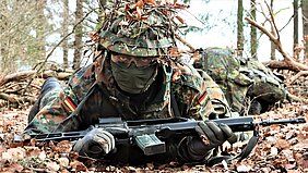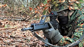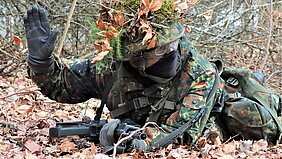 Tarnschminke im Gesicht, Gewehr G36, der schwere Rucksack... Gefechtsdienst ist für unsere jungen Soldaten kein Zuckerschlecken. Tarnung, richtige Verhalten im Gelände, das gegenseitige Sichern, alle Grundlagen wurden in der Grundausbildung im Artilleriebataillon 295 gelegt. In der Stammeinheit müssen diese nun weiter verfeinert und intensiviert werden.