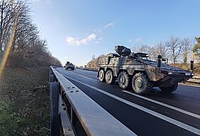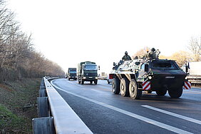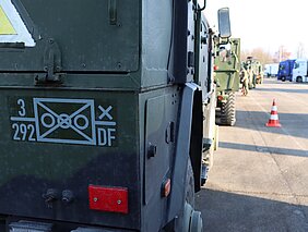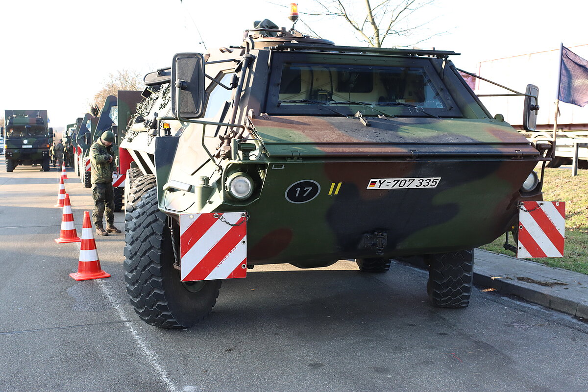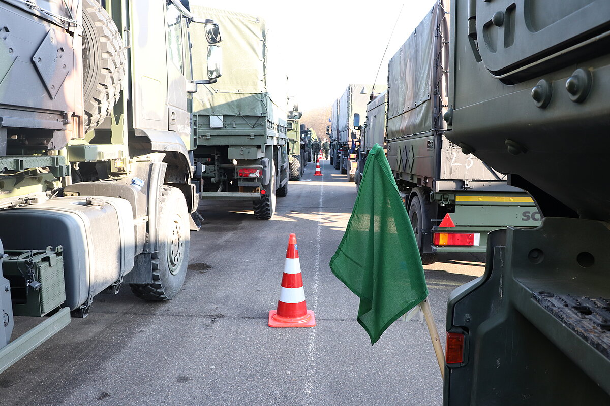 Das Jägerbataillon 292 aus Donaueschingen macht sich mit einem Marschpaket von 30 Fahrzeugen das entspricht einer Kolonnenlänge von 3 km auf den Weg ins 349 km entfernte Wildflecken. Die Herausforderung hierbei liegt darin Fahrzeuge mit Personal sowie Material unversehrt durch enge Straßen oder stark befahrene Autobahnen wie das Kreuz Stuttgart zu bringen. Nächster Halt Wildflecken.