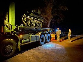 Fin octobre, dans le cadre de la préparation opérationnelle des unités de la Brigade, le bataillon de commandement et de soutien a soutenu le Jägerbattalion 292 pour le transport de 10 petits véhicules blindés WIESEL entre la garnison de Stetten et le camp d’entraînement au combat en zone urbaine, le « GÜZ », situé à 600 kilomètres plus au nord. Cette mission met en évidence l’excellente interopérabilité et la complémentarité des moyens binationaux dont dispose le BCS, et qui lui permettent de proposer un soutien opérationnel de qualité à tous les régiments de la BFA.