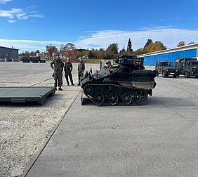 Ende Oktober unterstützte unser Versorgungsbataillon im Rahmen der Einsatzvorbereitung das Jägerbataillon 292. 10 Waffenträger Wiesel wurden auf die deutschen und französischen LKWs des Versorgungsbataillons verladen und von Stetten am kalten Markt ins 600 km entfernte Gefechtsübungszentrum in Gardelegen in Sachsen-Anhalt transportiert. Damit konnte das Versorgungsbataillon auf der logistischen Ebene 2 seinen binationalen Transportauftrag erfüllen und das Jägerbataillon 292 bei seiner Auftragserfüllung wirkungsvoll unterstützen.