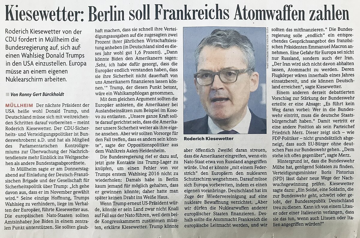 Namensartikel Roderich Kiesewetter MdB in ES&T 01/24