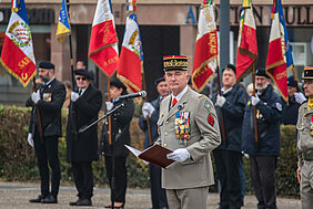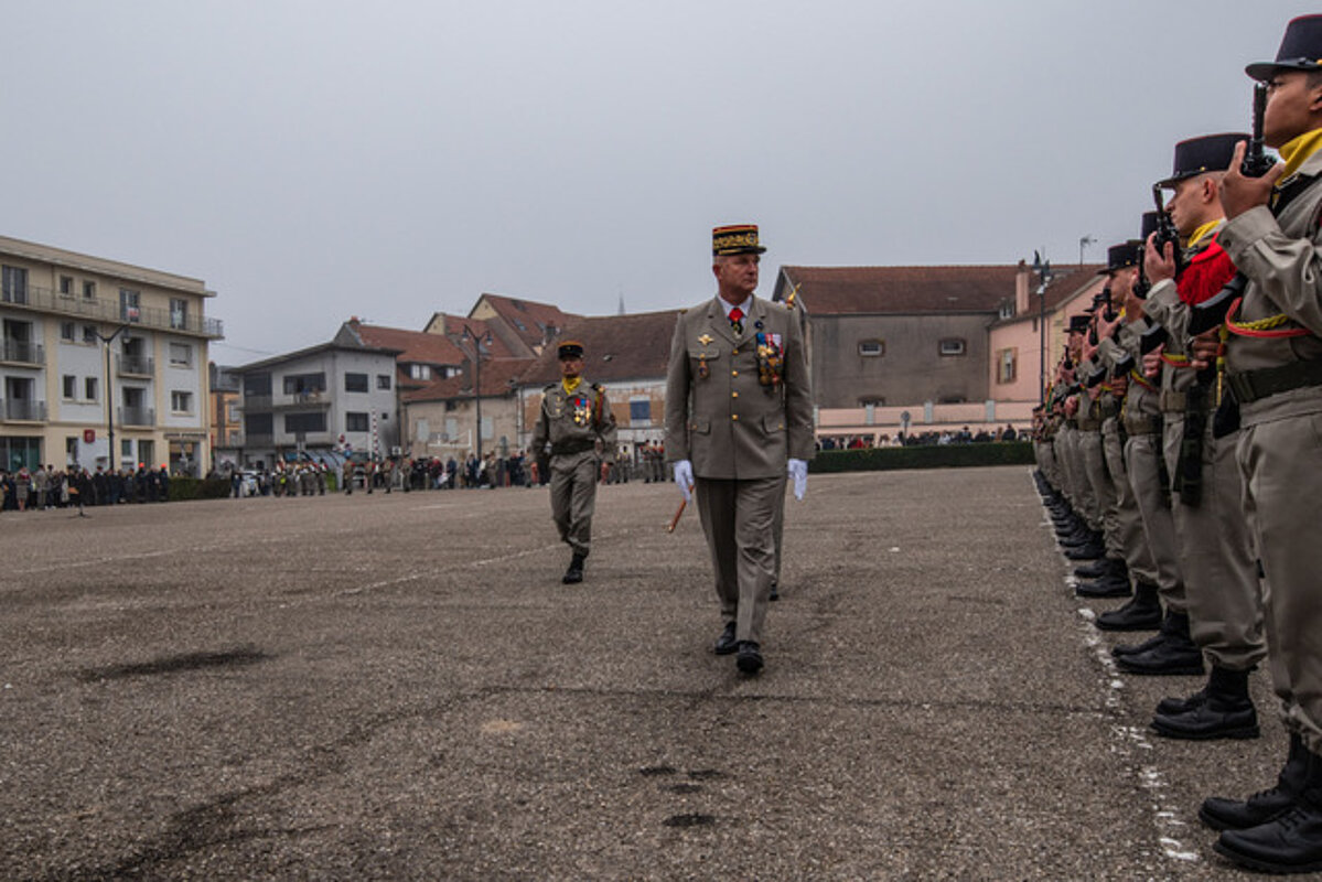 Jeudi 11 Novembre, au cours d’une cérémonie emplie d’une émotion particulière, le 1er régiment d’infanterie s'est vu remettre la croix de la Valeur Militaire avec palme de bronze par le général d'armée Eric Bellot des Minières, Inspecteur général des armées - Terre et le colonel Testart, ancien chef de corps de Picardie, pour ses actions en République Centrafricaine.