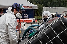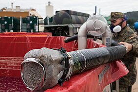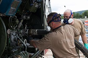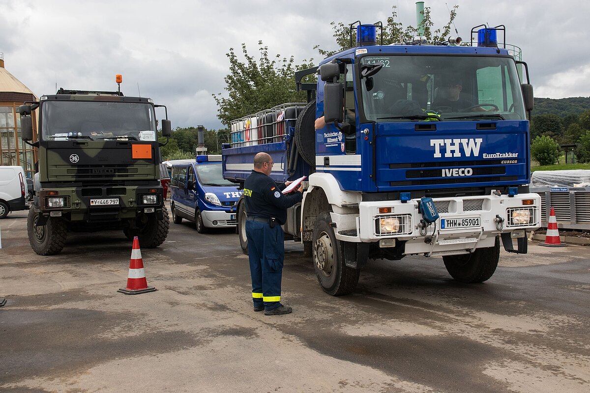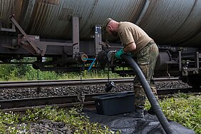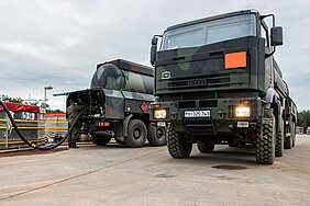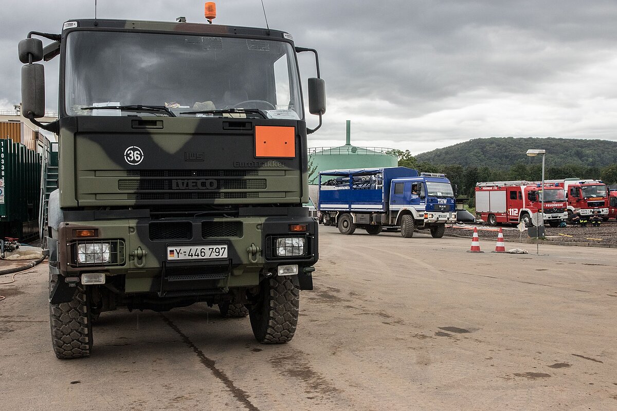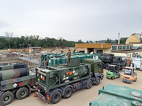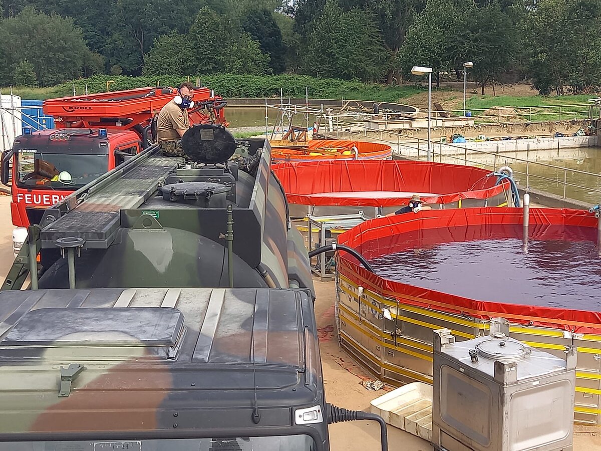 L'équipe carburant de la 2e compagnie BCS était en mission de soutien à Sinzig(Rhénanie-Palatinat) pendant près d'une semaine. Avec leur camion-citerne (STW) 8x8, le sergent Kay Katzenstein et le caporal Tobias Mager ont aidé le Technische Hilfswerk (THW - organisme de secours en cas de catastrophe) à lutter contre les conséquences des inondations qui ont frappé la vallée de l'Ahr. Chaque jour, ils ontconduit plus de 100 000 litres (100 m³) de fioul contaminé de la vallée de l'Ahr du point de collecte central du THW à Sinzig aux wagons-citernes de la gare. Unemission des plus physiques qui nécessitait de porter des tuyaux de 12 à 30 kg. Le proverbe dit "fort comme un ours"! Bravo à eux!