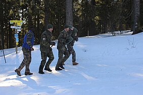 La 1ère compagnie du bataillon de commandement et de soutien a organisé une compétition sportive militaire en Forêt Noire pour l'ensemble du BCS. A Schönwald, à 1000 mètres d'altitude, les équipes binationales de toutes les compagnies ont dû effectuer un parcours exigeant par des températures hivernales. Il s'agissait notamment de transporter des bidons d'eau remplis le plus rapidement possible sur une certaine distance ou de lancer des grenades d'exercice dans des cibles. La séance de sport a porté ses fruits! Même s'il n'y a eu qu'une seule équipe gagnante, ce fut pour tous une journée profitable et pleine d'action, tout à fait dans l'esprit de la devise du bataillon : "Acta non verba".