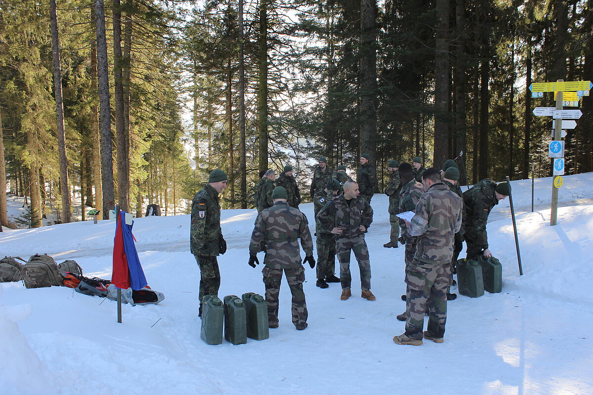 Die 1. Kompanie des Deutsch-Französischen Versorgungsbataillons organisierte im Schwarzwald für das gesamte Bataillon einen militärischen Sportwettkampf. Im 1000 Meter hoch gelegenen Schönwald hatten die binationalen Teams aller Kompanien bei winterlichen Temperaturen einen fordernden Parcours zu absolvieren. Dabei waren unter anderem gefüllte Wasserkanister möglichst schnell über eine gewisse Distanz zu tragen oder Übungshandgranaten in Zielkreise zu werfen. Eine schweißtreibende Angelegenheit, die den Teilnehmerinnen und Teilnehmern viel abverlangte. Auch wenn es am Ende nur ein Siegerteam gab war es für alle ein gewinnbringender Tag voller Action, ganz im Sinne des Bataillonsmottos: „Acta non verba“.