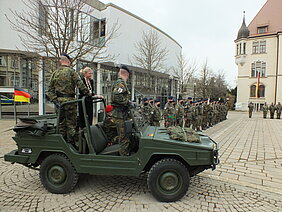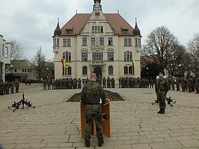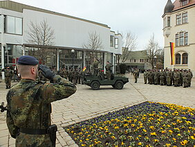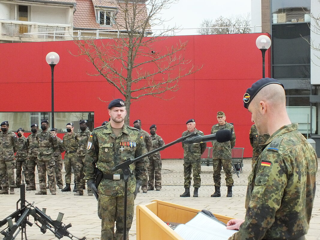Mi-mars, le Major (commandant) Kügler, a remis le commandement de la 3e compagnie du bataillon de commandement et de soutien au Hauptmann (capitaine) Birckholtz. Dirigée sous les ordres de l'Oberstleutnant (lieutenant-colonel) Stahl, chef de corps du bataillon, la cérémonie s’est déroulée devant l'hôtel de ville de Trossingen, la ville marraine de la compagnie en présence de Mme le maire de la ville Susanne Irion et de nombreux curieux. La prise d’armes fût également l’occasion de célébrer le passage au statut de sous-officier de carrière du sergent Schimmelpfenning!