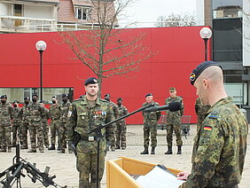 Neben der Kompanieübergabe war die Übernahme von Stabsunteroffizier Alexander Schimmelpfenning in das Dienstverhältnis eines Berufssoldaten ein weiteres "Highlight" an diesem Tag.