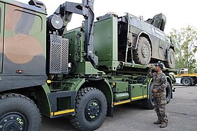 En septembre et en octobre, le peloton de ravitaillement de la 2e compagnie du bataillon de commandement et de soutien a rempli une mission particulière, qui consistait à transporter un petit véhicule blindé, le Fennek, appartenant à leurs camarades allemands du Jägerbatallion 291. Chargé sur Porteur polyvalent logistique Terre (PPLOG), le Fennek s’est ainsi rendu 2 semaines à la présentation commune de l’armée de Terre (PCAT), qui s’est déroulée fin septembre. Pour les équipages, cette mission était une première ainsi qu’une expérience enrichissante qui a mis en évidence leurs savoir-faire et leur capacité à travailler en binational en soutenant la Brigade.