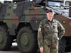 La Hauptfeldwebel Christine Erfurt travaille au sein de l’état-major du Jägerbataillon 292. Cette jeune militaire de 35 ans a commencé en 2011 dans l’artillerie à Idar-Oberstein avant d’aller chez les chasseurs. Son passe-temps est original : la vie au Moyen Âge. Elle crée et coud elle-même les vêtements de l’époque. « Les marchés médiévaux me fascinaient déjà quand j’étais adolescente, dit Christine Erfurt, souvent, il n’y avait pas de vêtements correspondants, alors j’ai commencé à en créer et à en coudre moi-même. Ça m’a tellement plu que j’ai cousu de plus en plus de choses. » Cette jeune militaire, qui quitte la Bundeswehr dans 2 ans, aimerait faire de son passe-temps un métier. Elle voudrait être styliste de mode et couturière sur mesure. Son grand rêve : avoir son propre atelier. « Mon expérience dans l’armée me sera d’une grande aide dans ma vie professionnelle civile », souligne-t-elle. Nous lui souhaitons beaucoup de succès pour l’avenir !